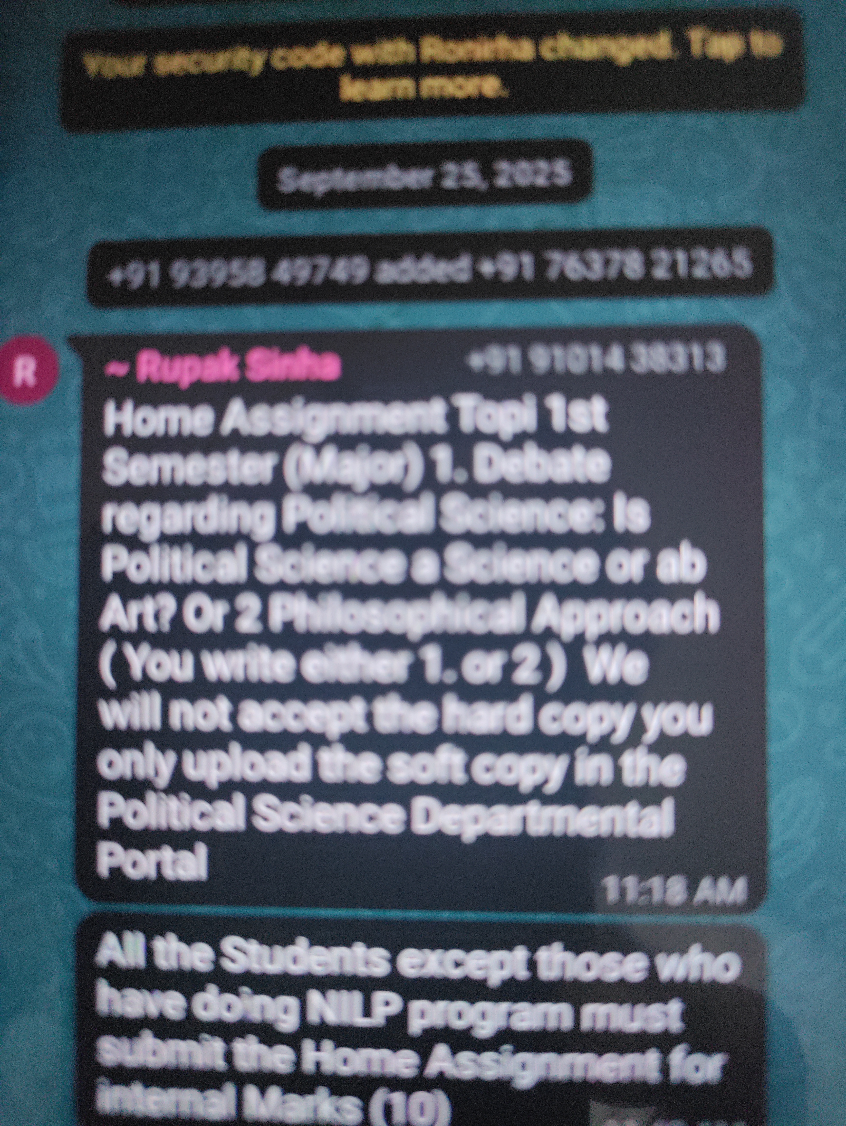 RUPAK SINHA | FYUGP 1ST SEM ARTS Major | POLITICAL SCIENCE | Debate regarding Political Science: is Political Science is a Science or an Arts or Philo.Approach | 2025-10-15 | View Upload |