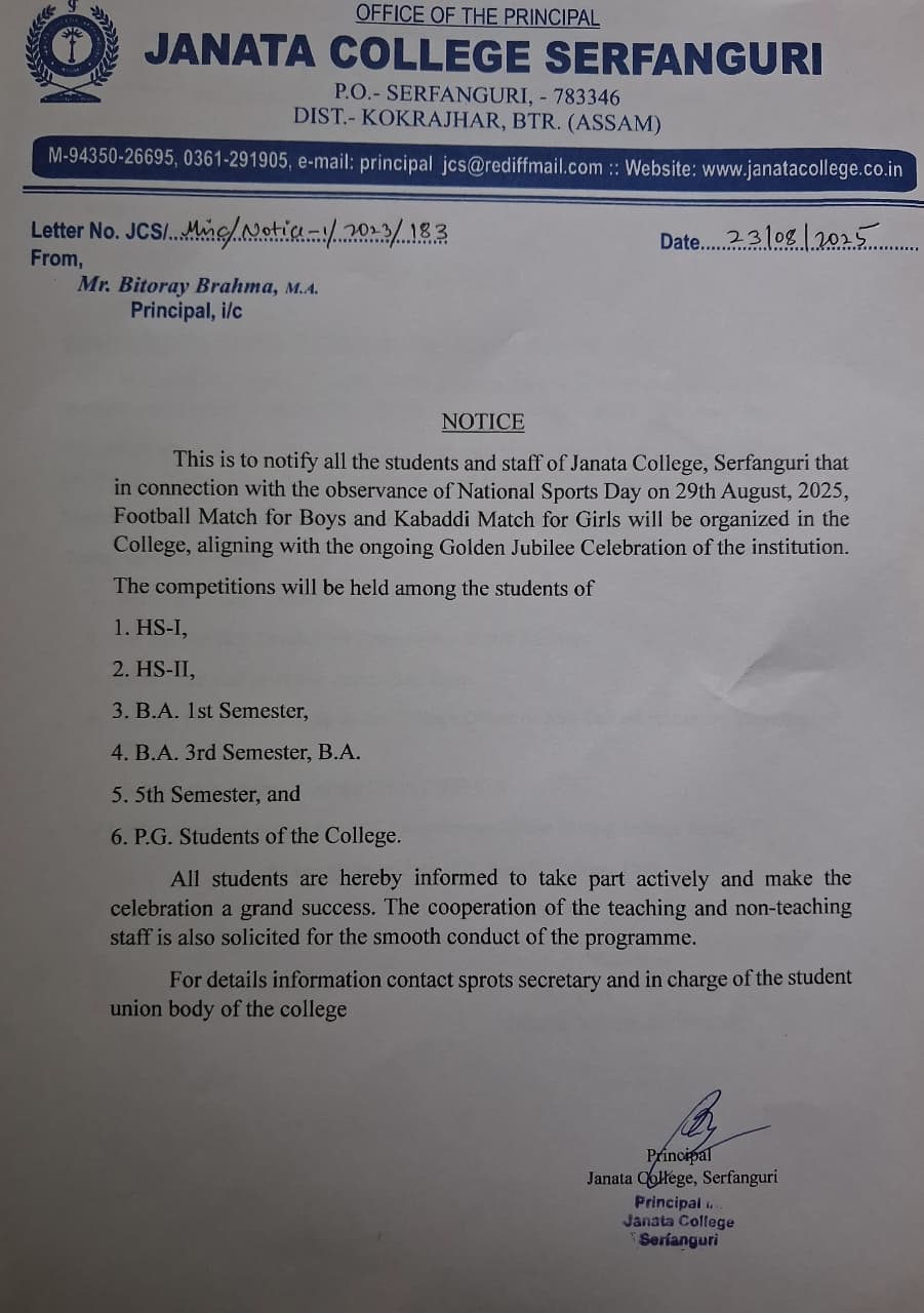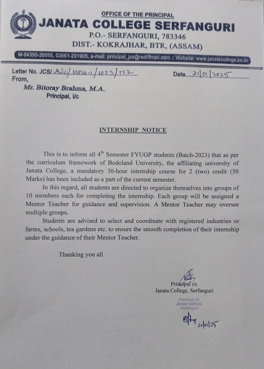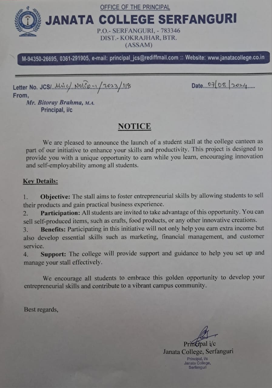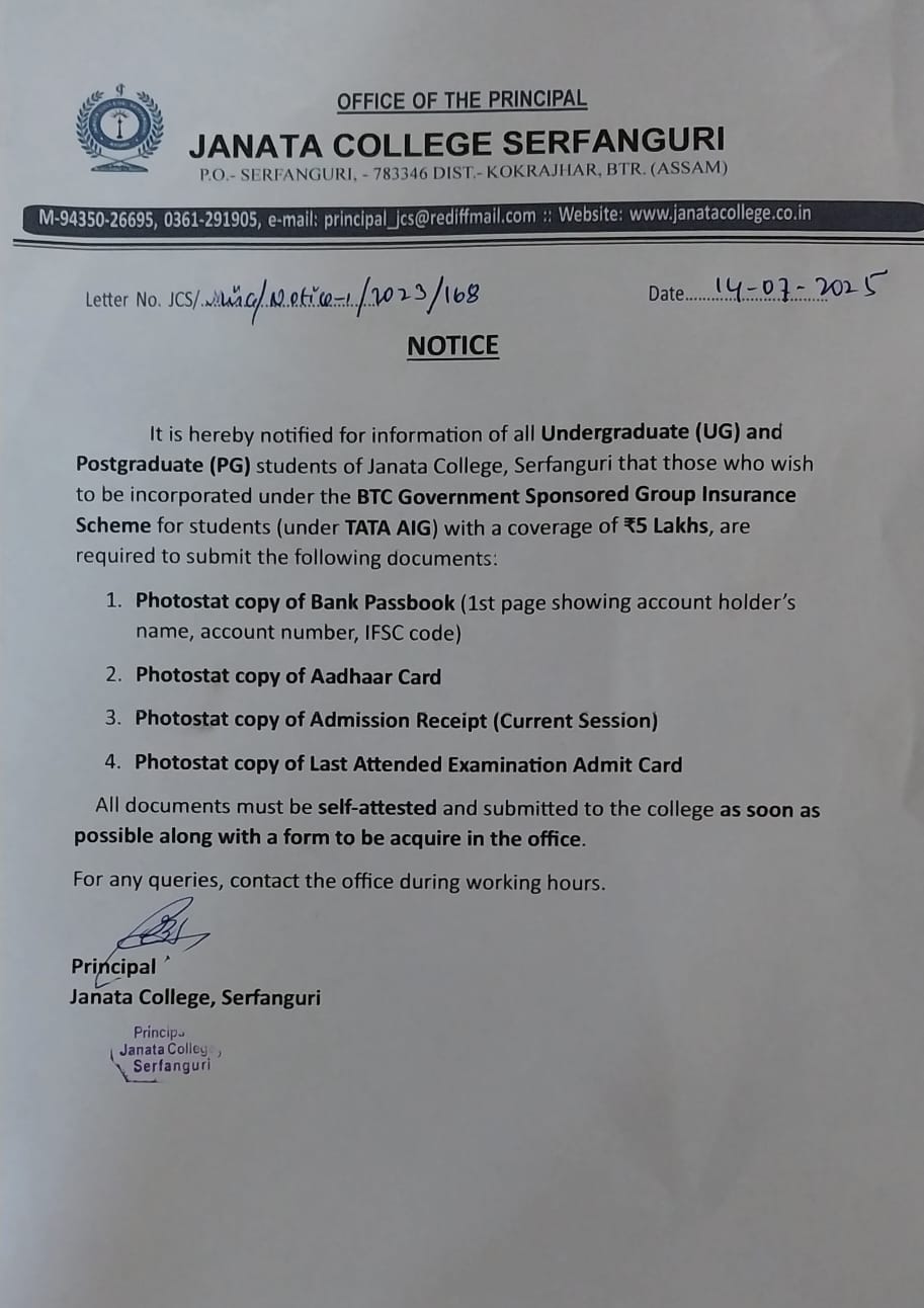 NOTICE TO ALL STUDENTS OF JANATA COLLEGE, SERFANGURI FOR STRICK COMPLIANCE OF ORDER. View 2025-03-29