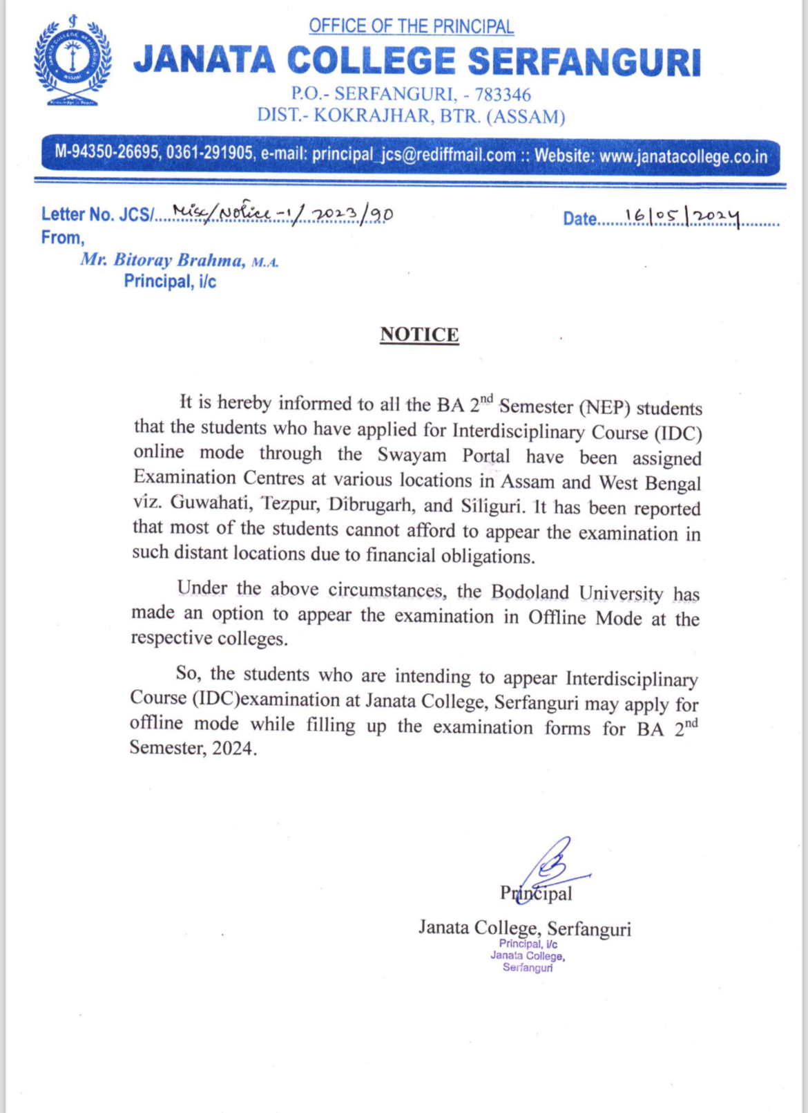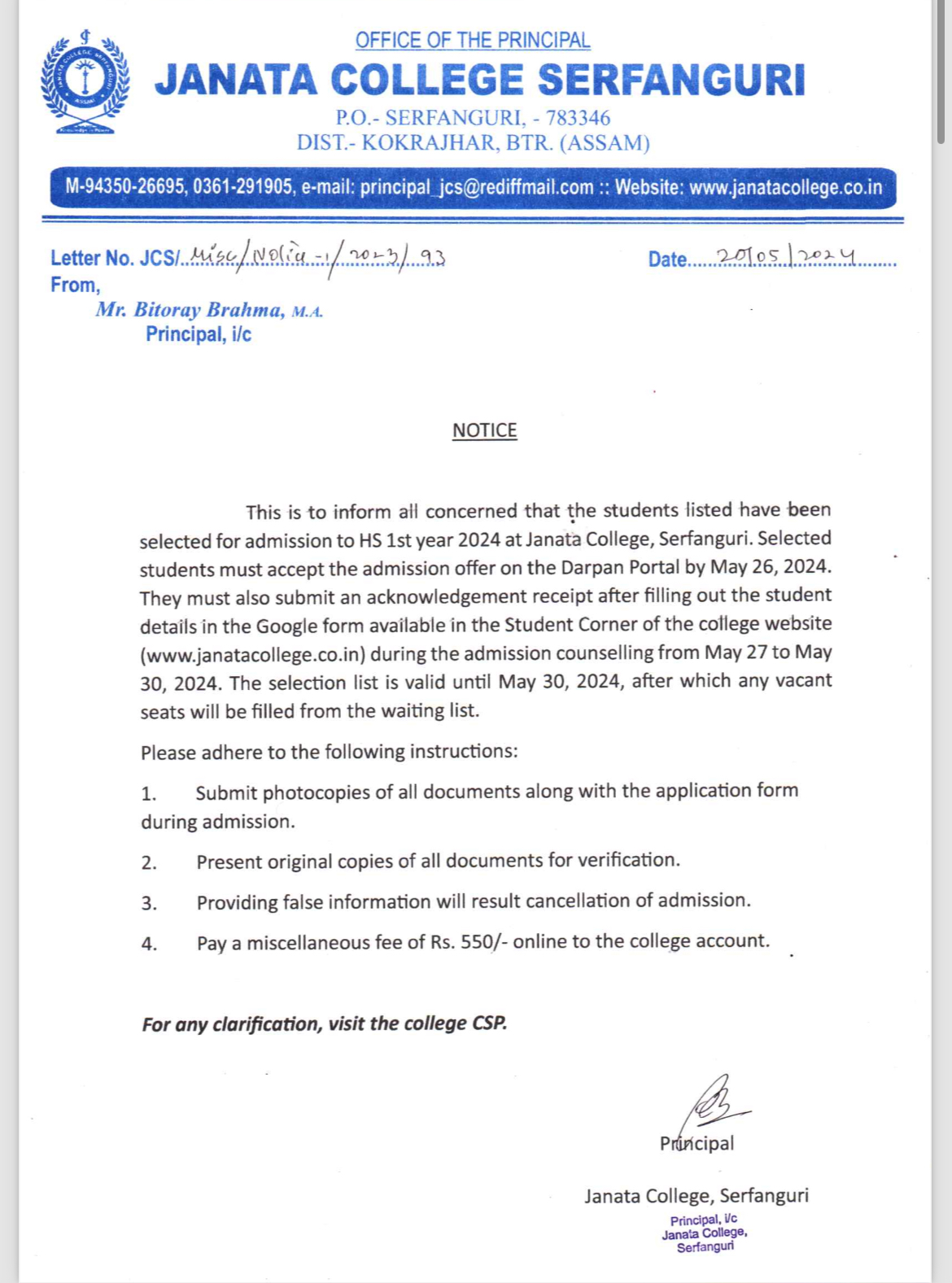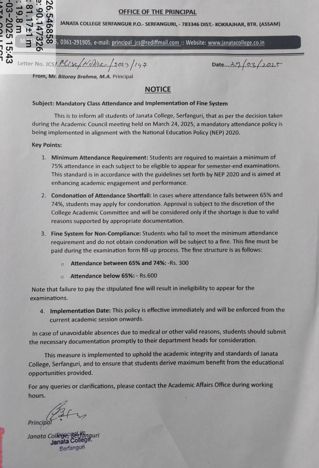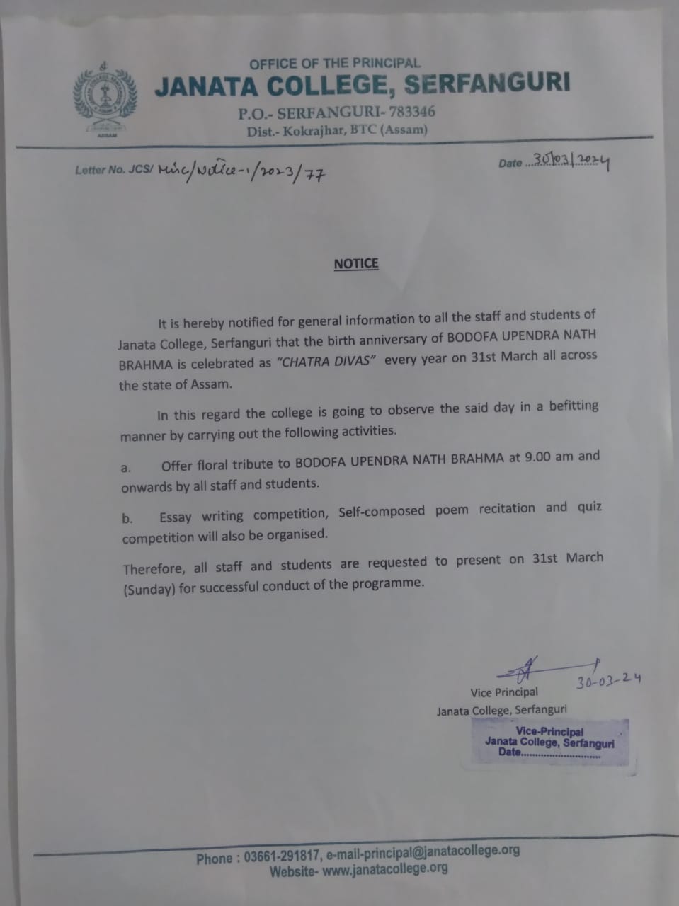 NOTICE TO ALL STUDENTS OF JANATA COLLEGE, SERFANGURI FOR STRICK COMPLIANCE OF ORDER. View 2025-03-29