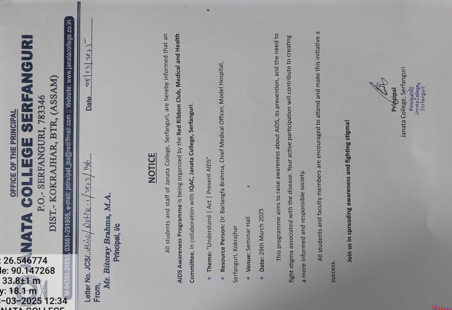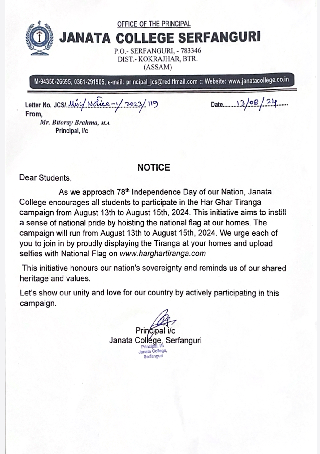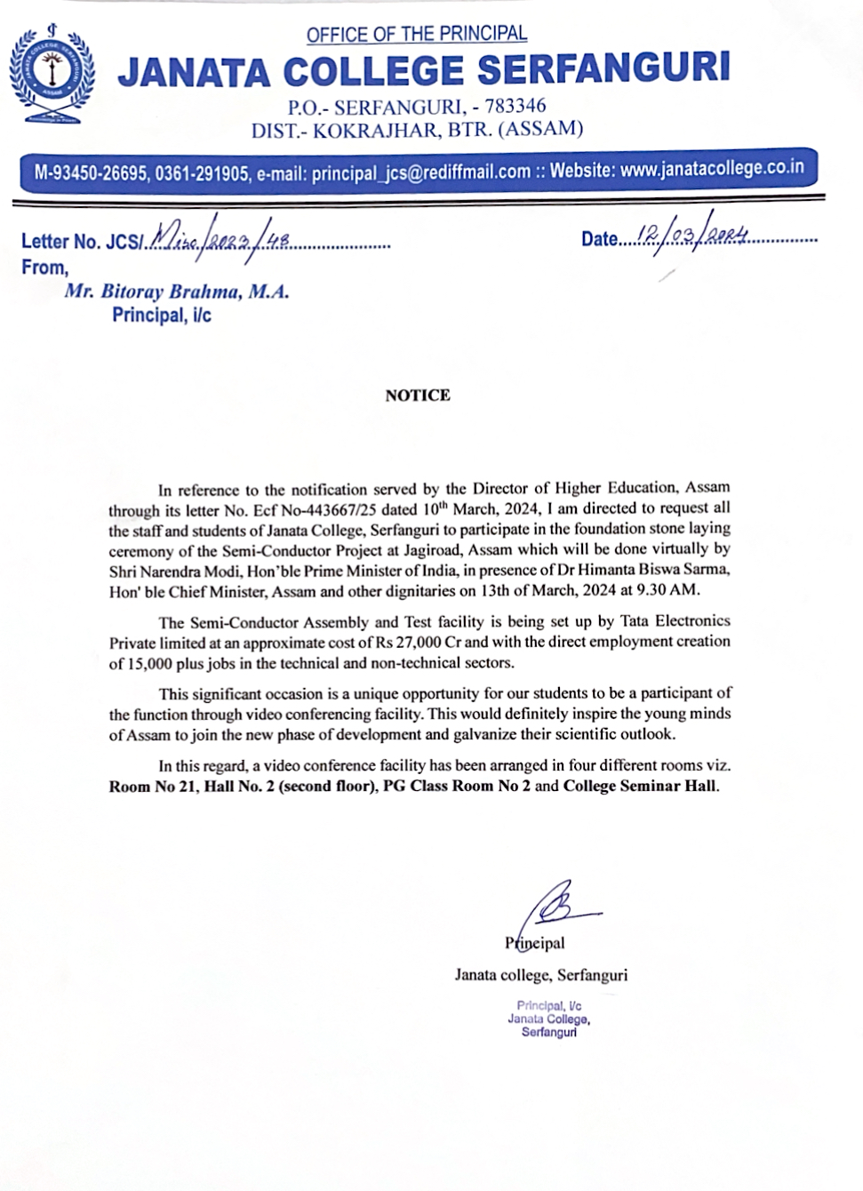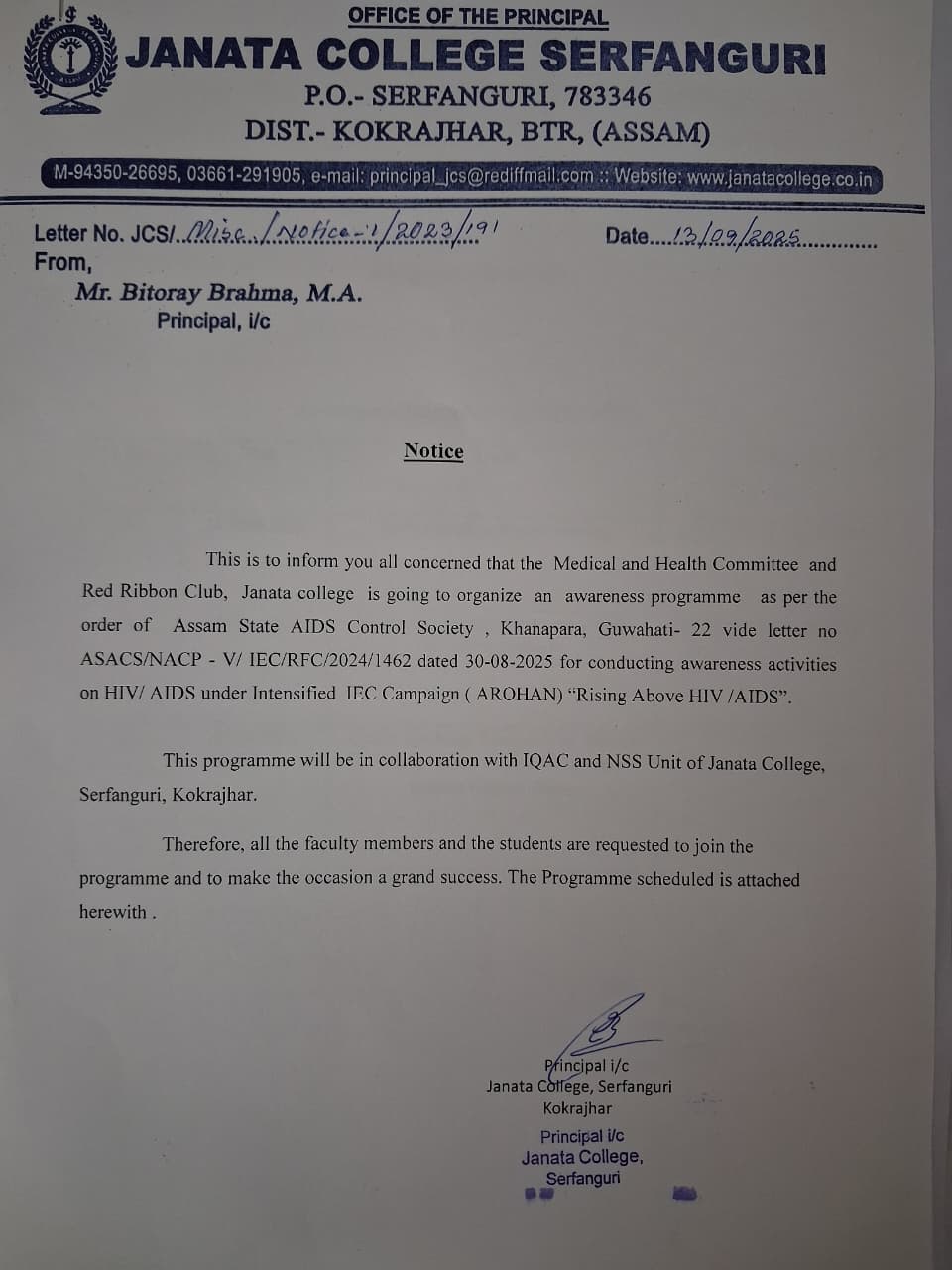 NOTICE TO ALL STUDENTS OF JANATA COLLEGE, SERFANGURI FOR STRICK COMPLIANCE OF ORDER. View 2025-03-29