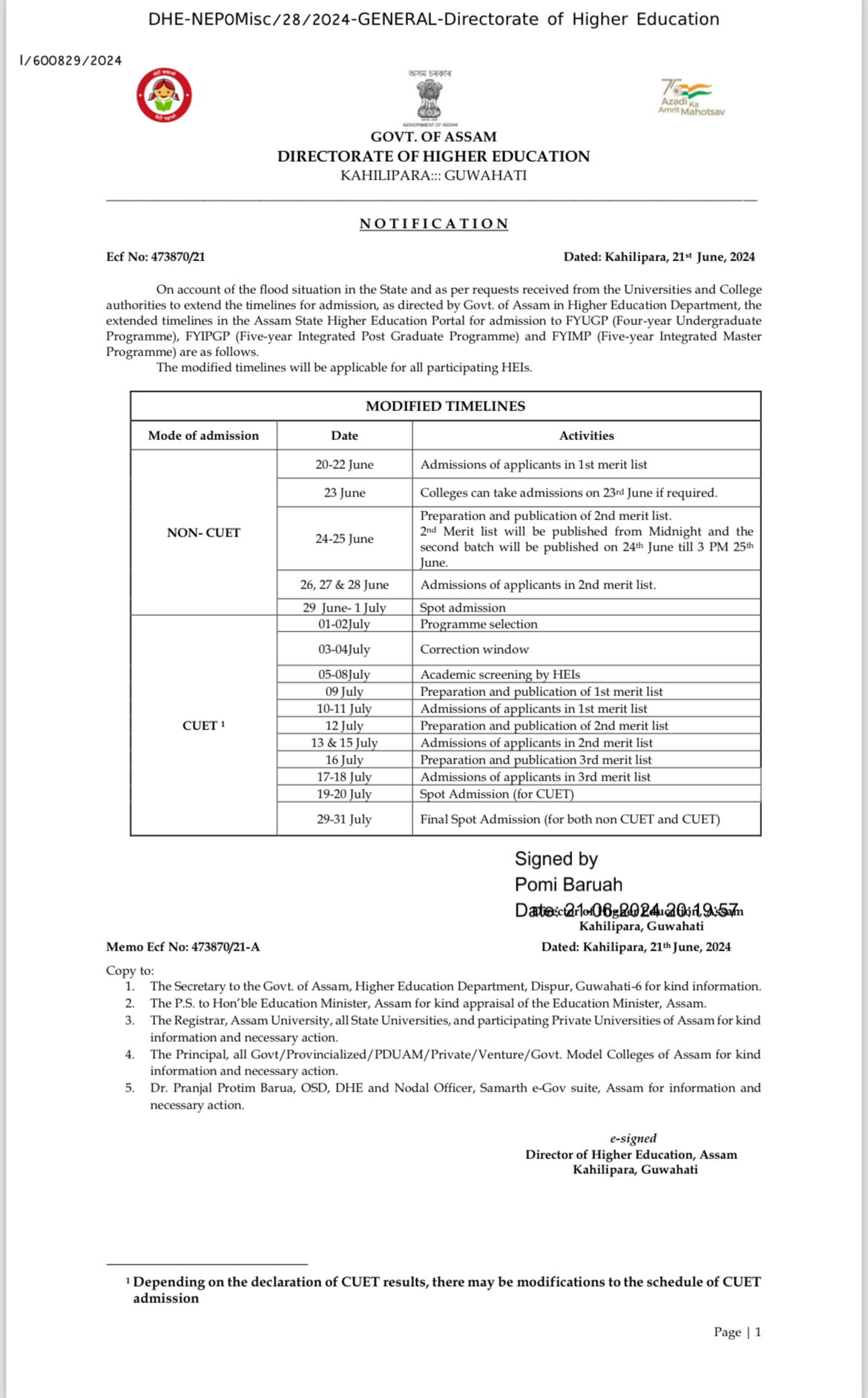 Guidelines for spot admission policy circulated by Director of Higher Education , assam View 2025-06-19